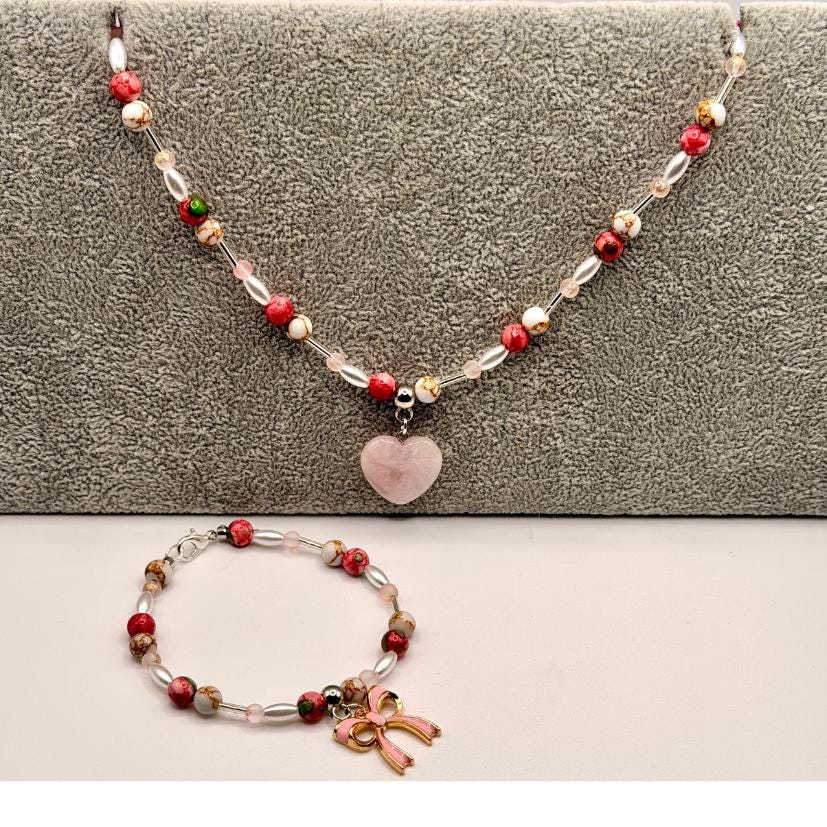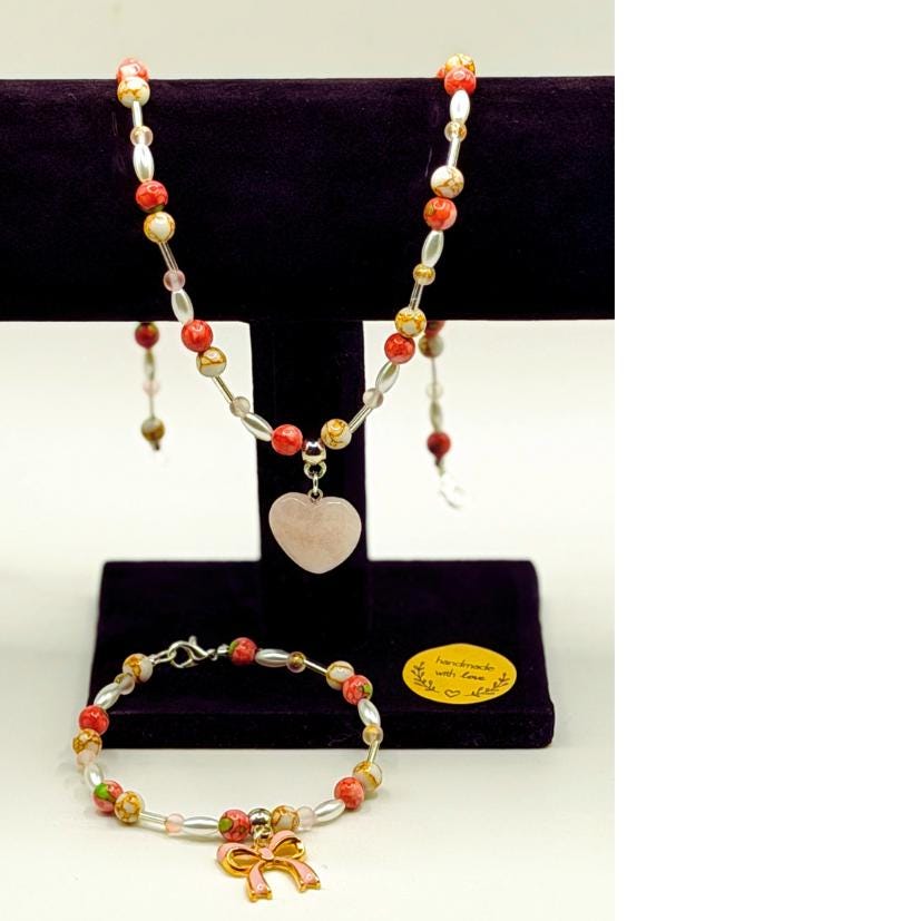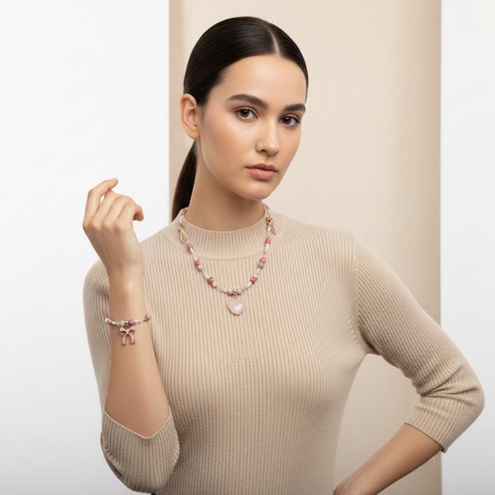 The necklace and matching bracelet harmonize beautifully and add a feminine and stylish touch to any outfit, whether for everyday wear or special occasions.