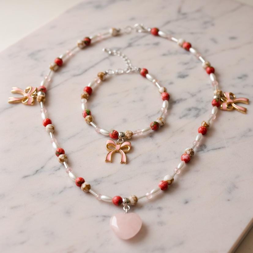 This lovingly handcrafted jewelry set combines delicate elegance with playful details.